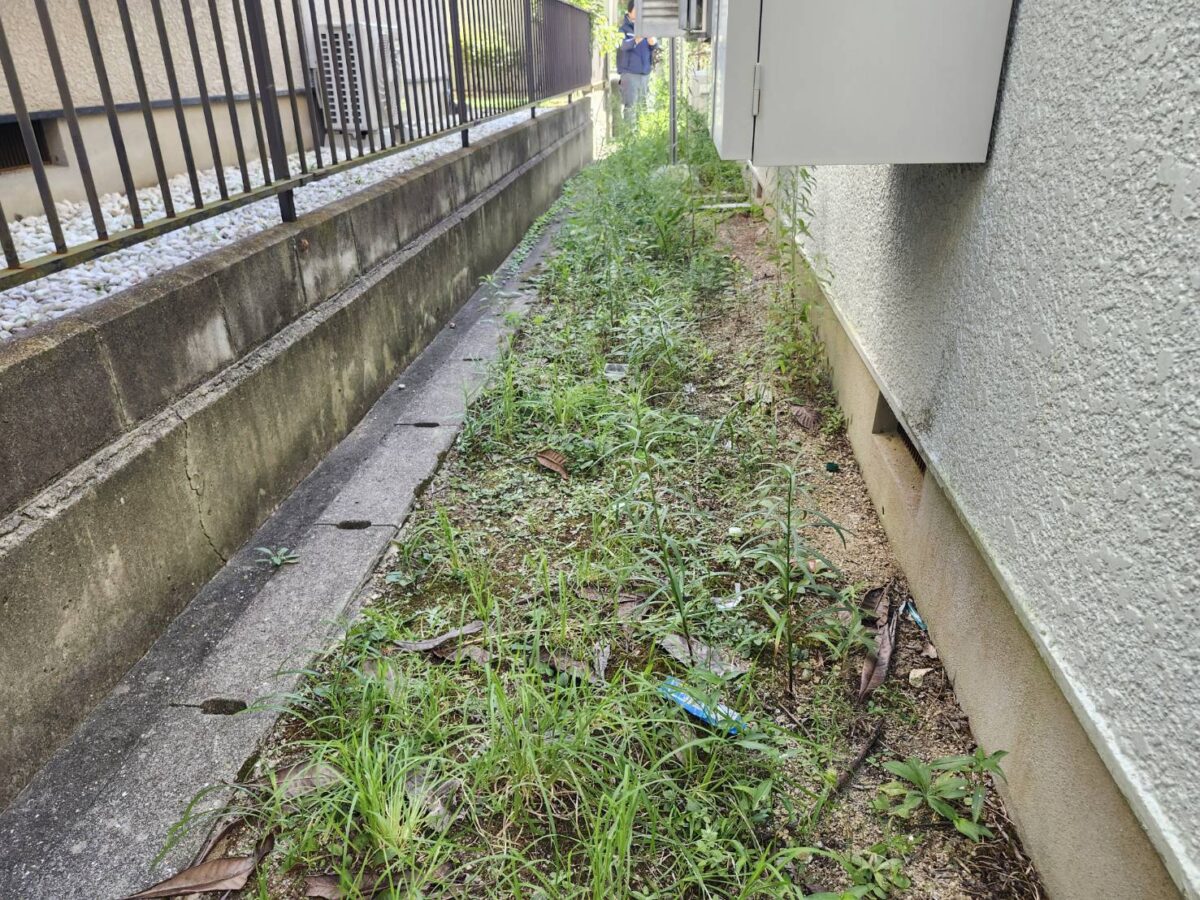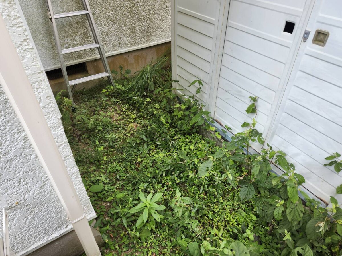 雑草引きの様子です。この時期は雑草がよく生える時期でもありますので、お庭の手入れを少し怠ると、すぐにご覧のように雑草が覆い茂ってしまっていることが多くあると思います。施主様からご相談を頂きお庭の雑草引きを施工させて頂きました。施工前と施工後ではご覧のように見違えるほどスッキリしましたね!