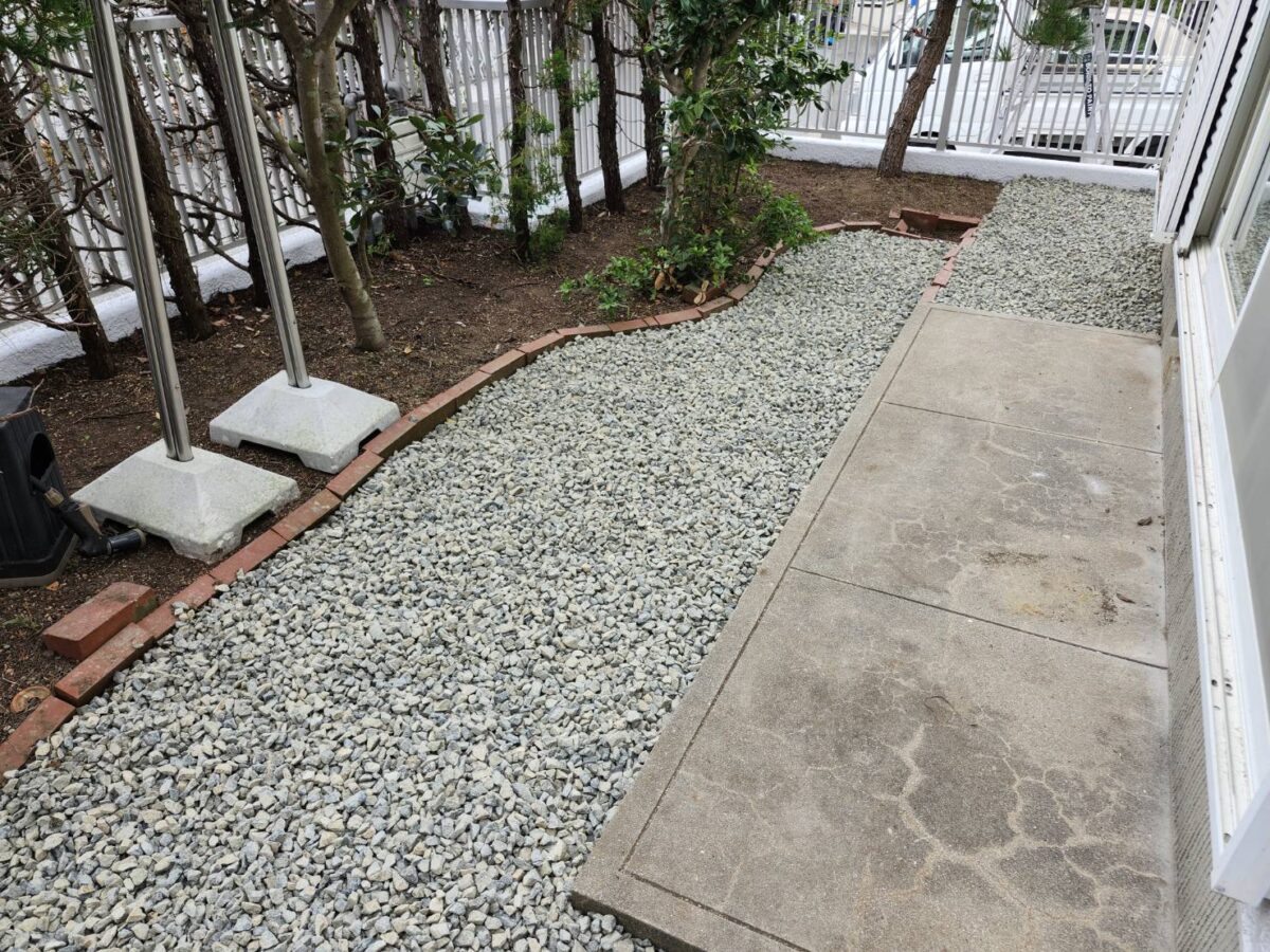 外壁塗装を施工中に、施主様から、お庭の雑草をどうにかしてほしいと、ご相談を頂き、雑草引きだけでは、すぐにまた、お庭が雑草で覆い茂ってしまいますので、砕石敷きも一緒に施工させて頂くことになりましたので、ご紹介します。