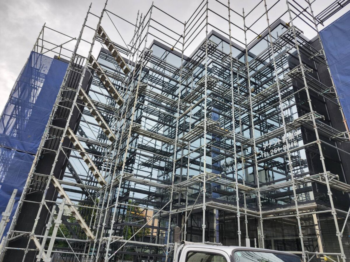 今日の1枚です。現在施工中の現場ですが、仕上がりの確認のために正面のシートを外しました。いい感じに仕上がっています(^^♪