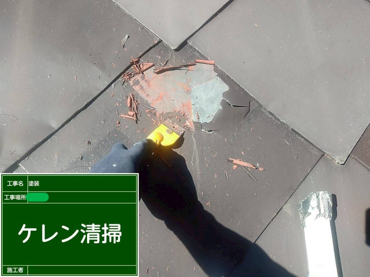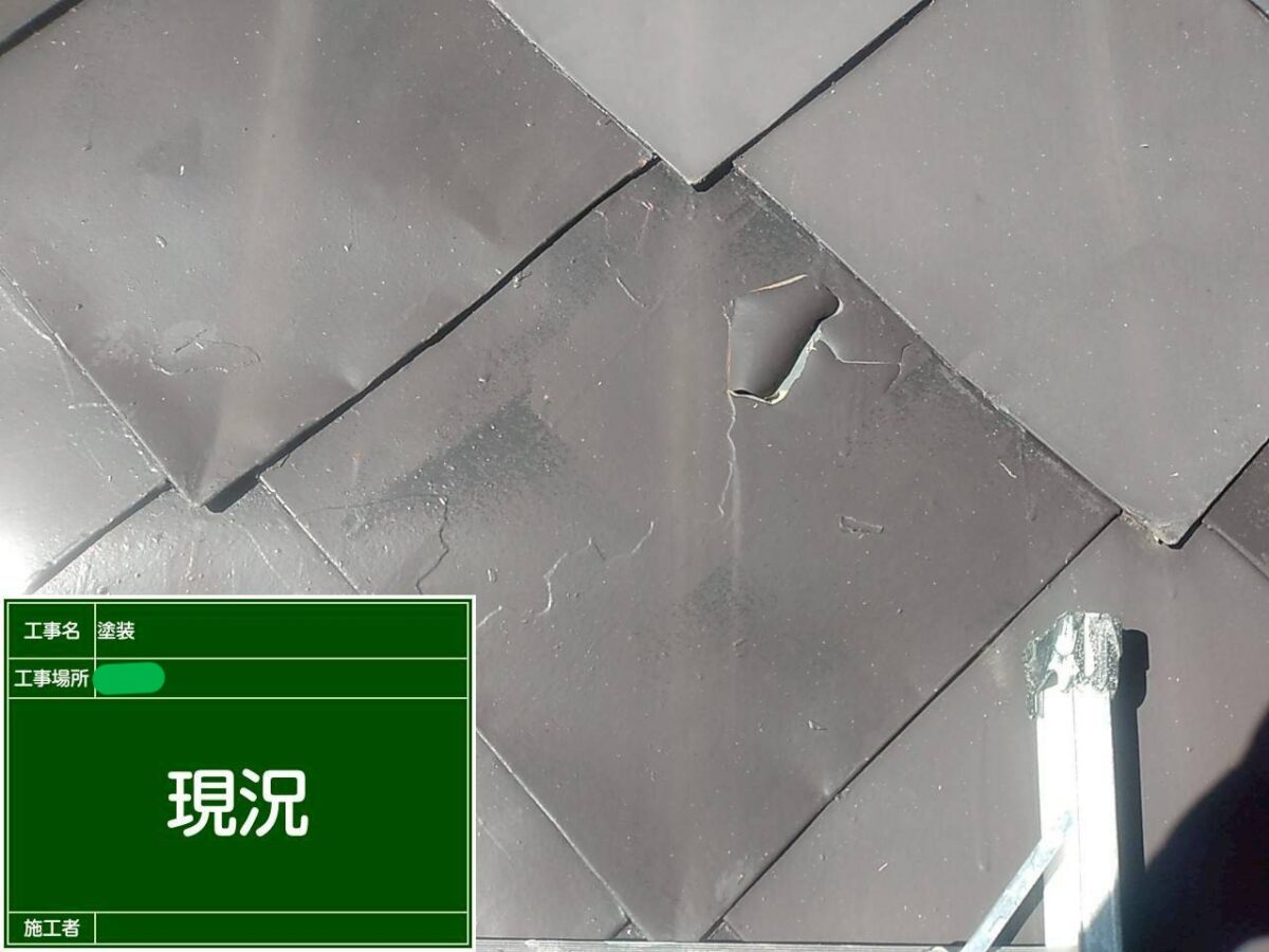 今回の施工では、塗膜が捲れている箇所の部分的な塗り替え塗装になります。屋根の棟付近の作業には、危険が伴いますので、高所作業所を使用しました。以前も同じような塗り替えを施工しておりますので、今回で3度目の部分的な塗装になります。