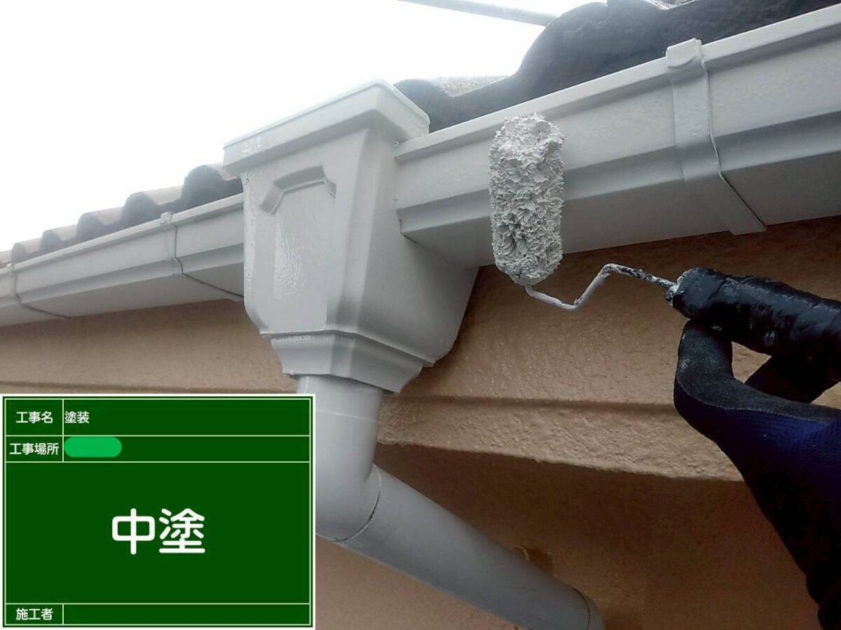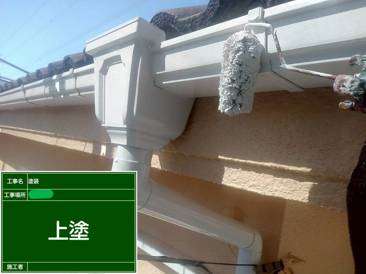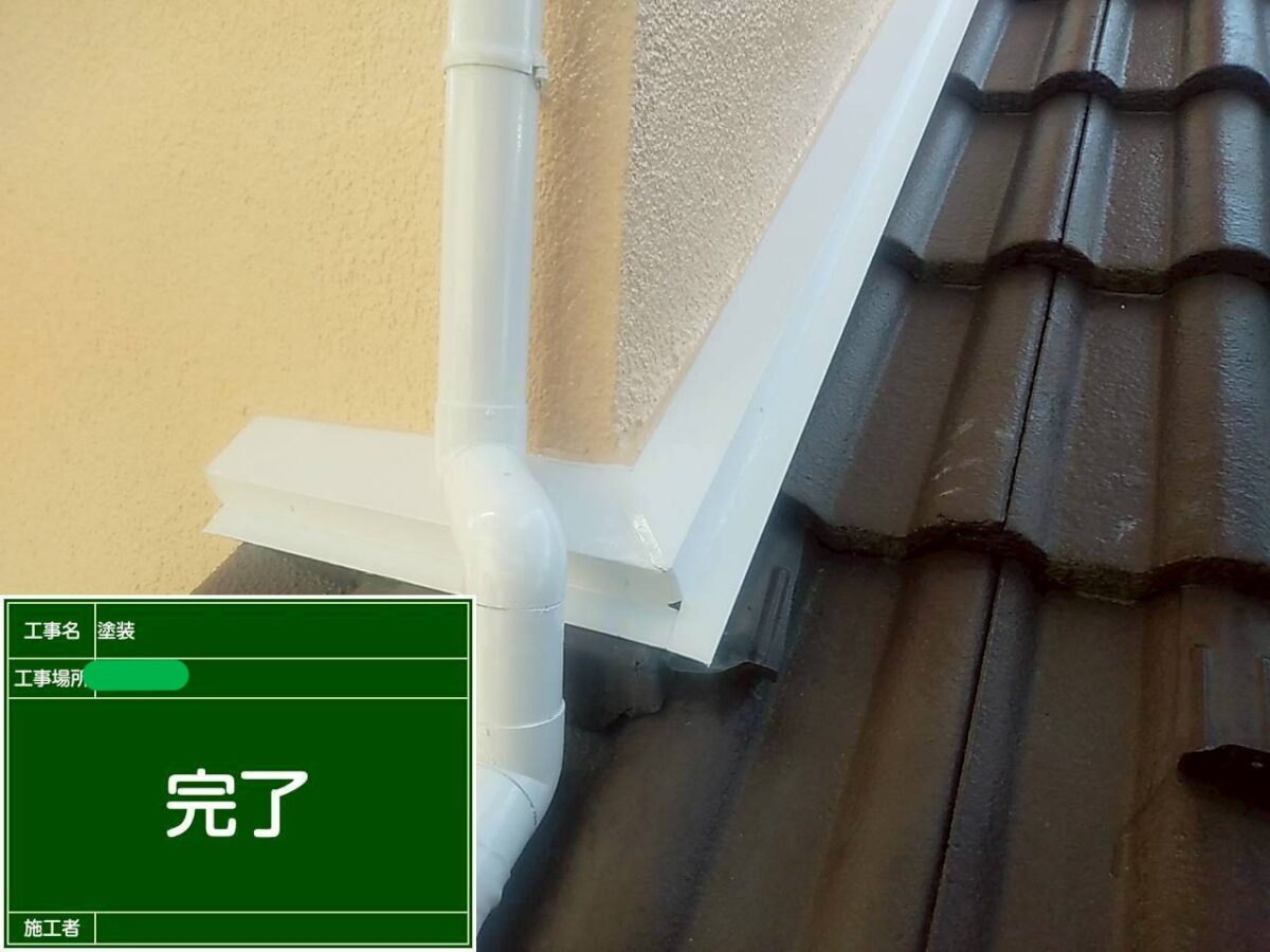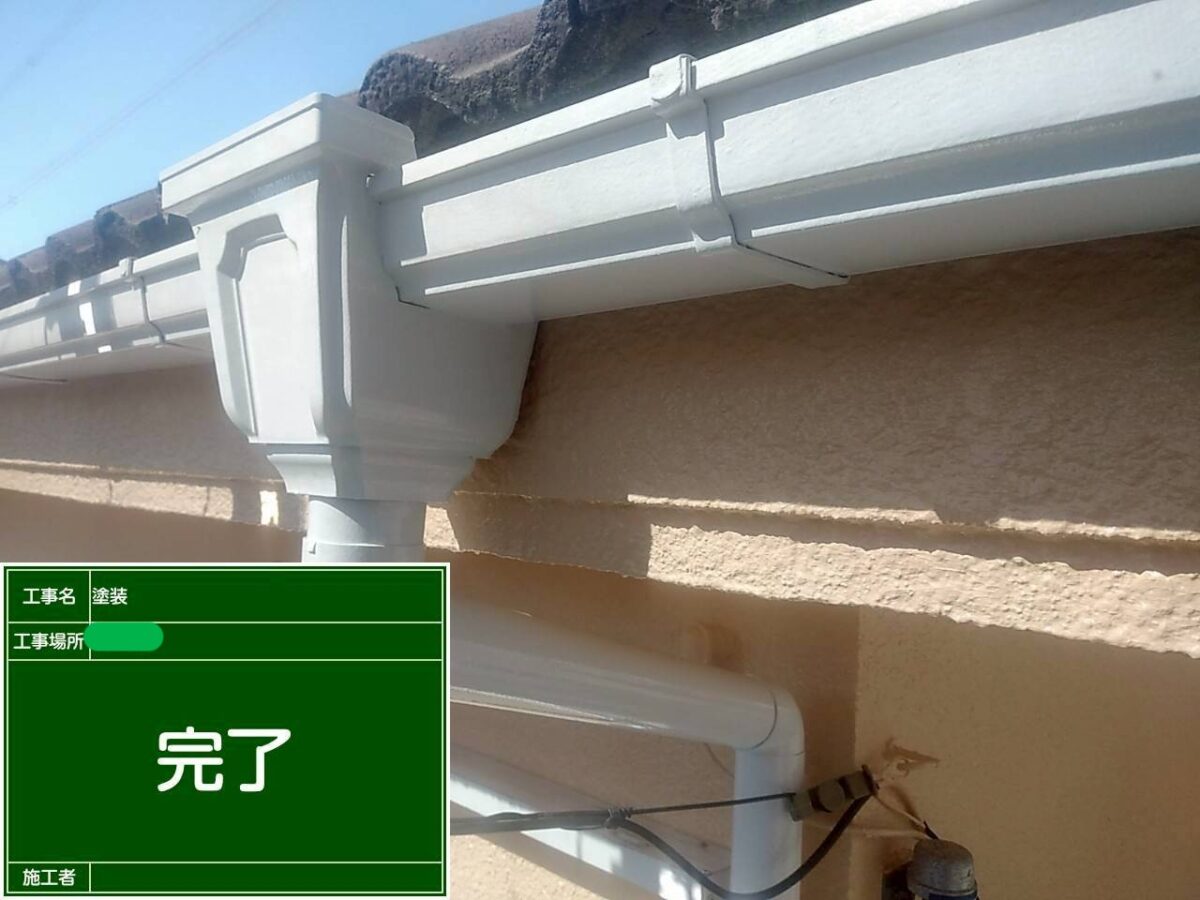 樋の塗装になります。樋の材質が、塩化ビニールの材質になり、下塗りの必要がありませんので、目粗しのケレン作業をおこなってから、中塗り塗装と上塗りの塗装で仕上げました。使用塗料は、日本ペイントのファインSiになります。ファインSiは弾性仕様の塗料になりますので柔らかいのが特徴になります。