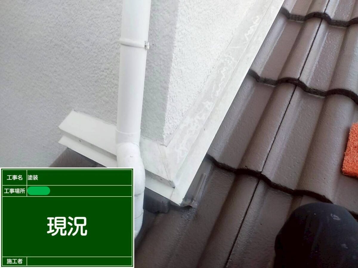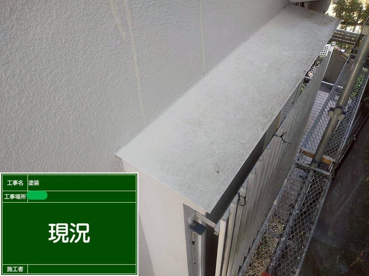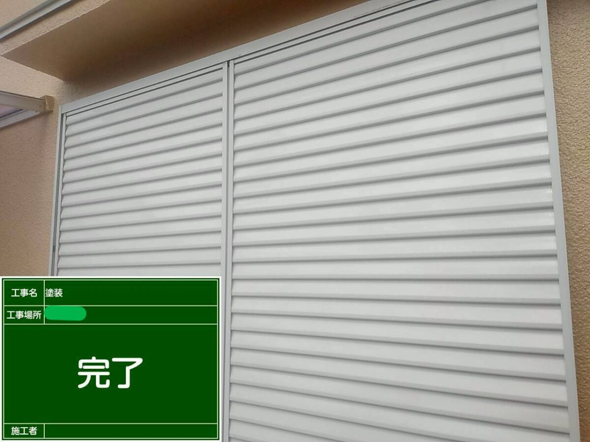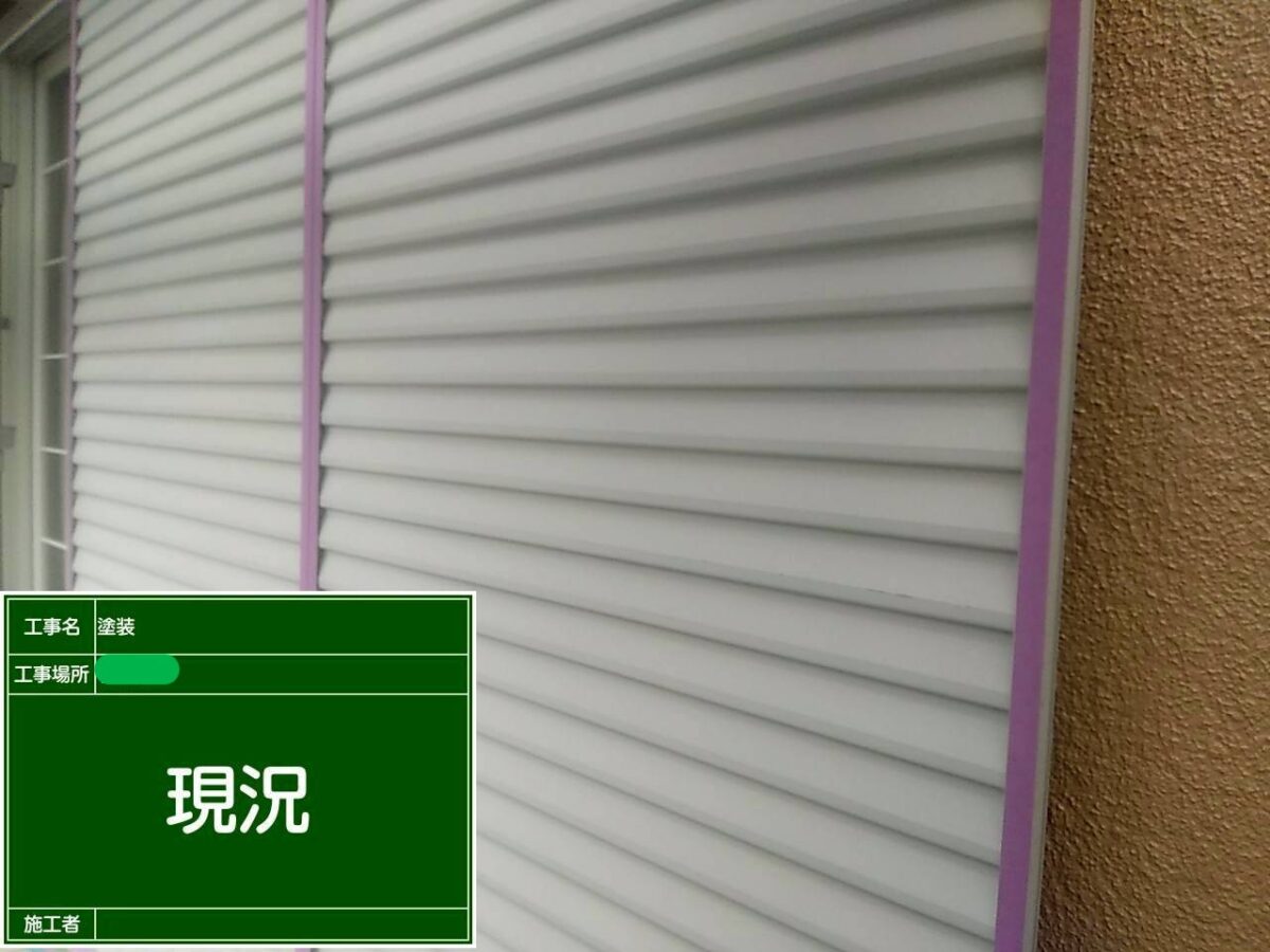 付帯物の水切りと雨戸の塗装になります。庇と同じ塗装工程になりますので、現況と完了でご紹介します。