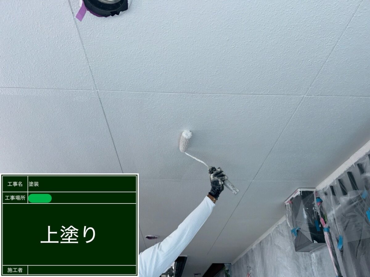塗装完了です。施工前は黒く汚れていた天井でしたが、塗装後は明るくなった印象ですね!