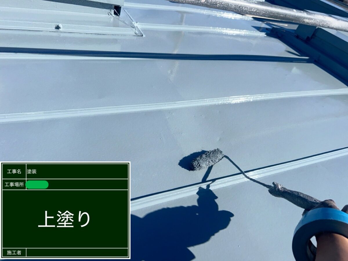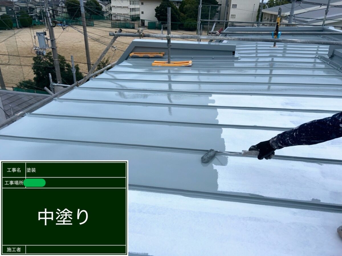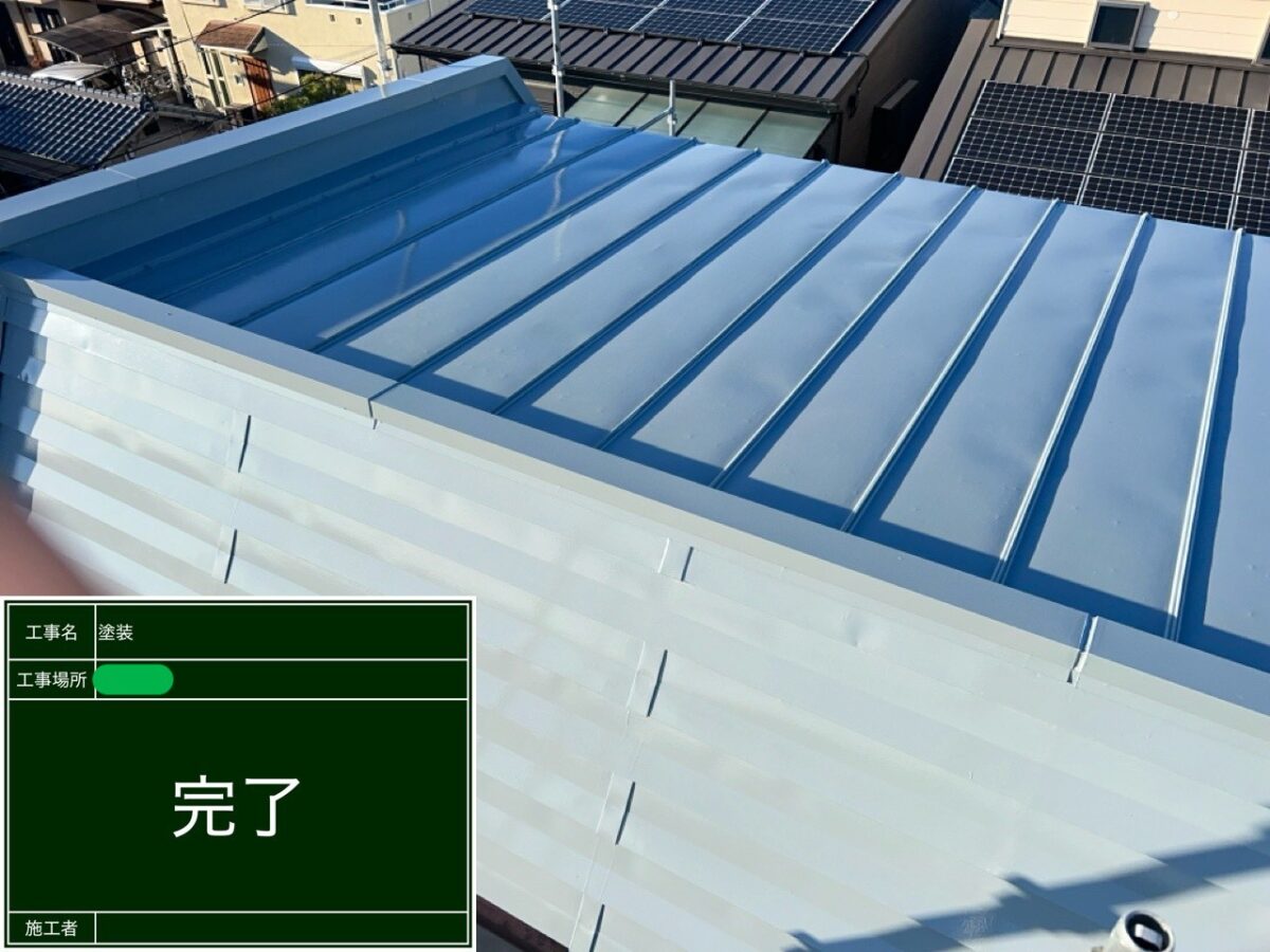 伊丹市にて施工中の現場ですが、鉄板屋根の塗装が無事に完了しましたので、ご紹介します。