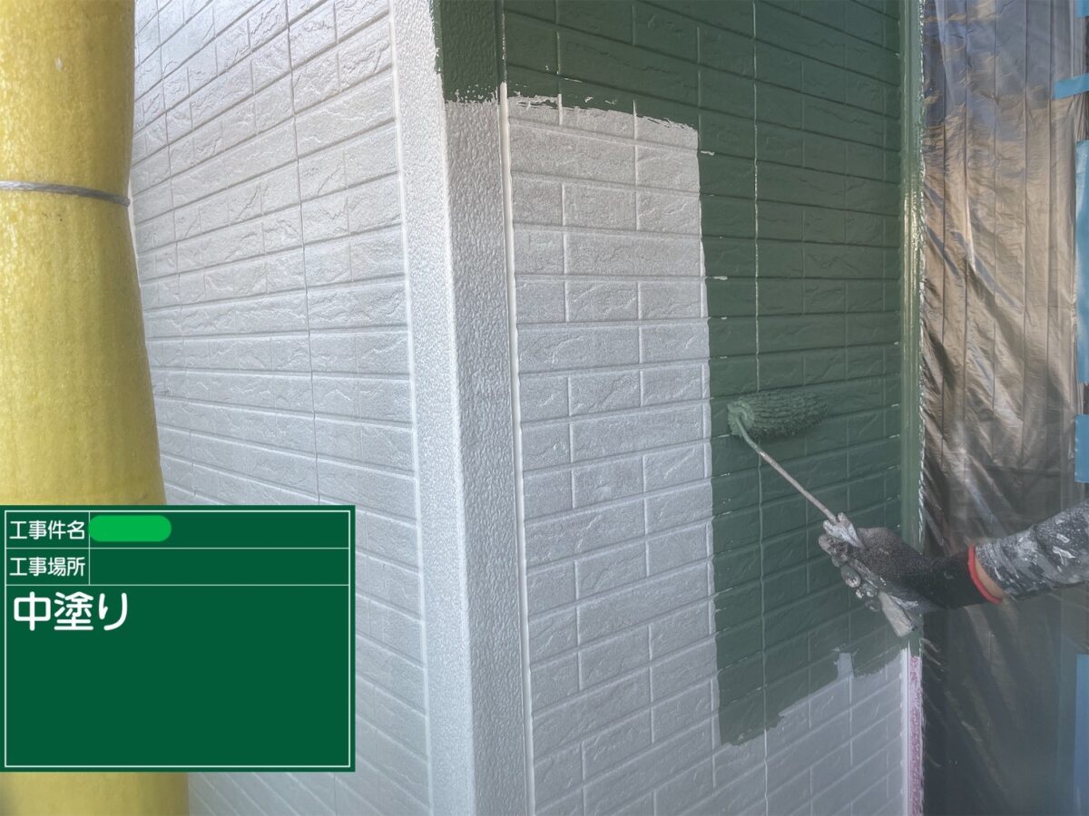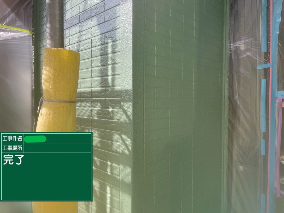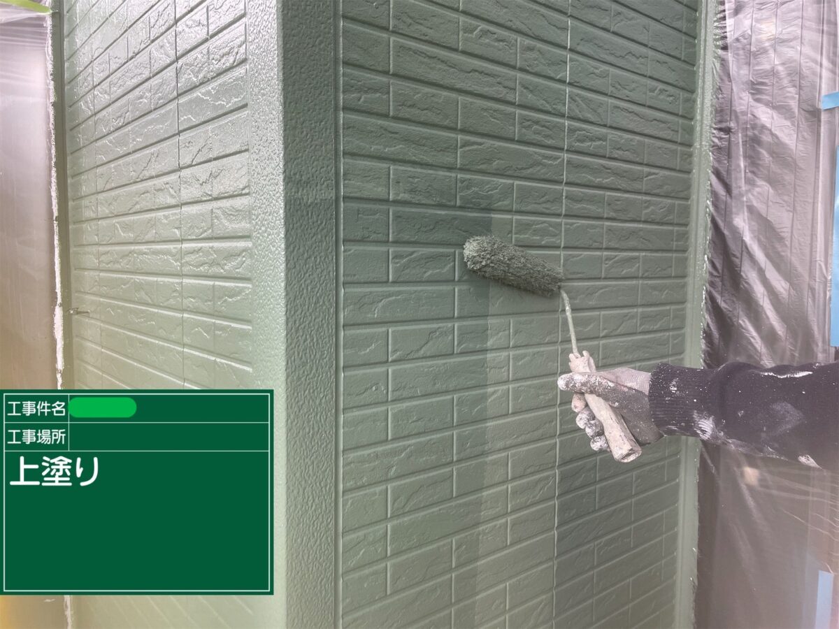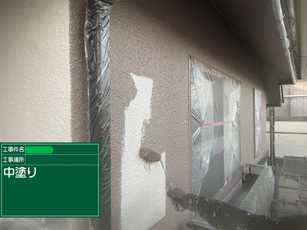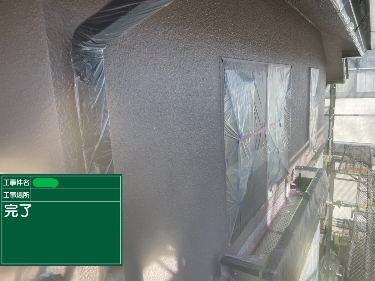 外壁下部の塗装になります。塗装工程は下塗り塗装・中塗り塗装・上塗り塗装の3回塗りで、外壁の塗装を仕上げます。上塗り材のアステックペイントのスーパーラジカルシリコンGHには、二重構造のアクリルシリコン樹脂を採用しており、表面が滑らかで汚れが付きにくい特性があります。付着した汚れも雨水で流れ落ちやすいため、建物の美観を長く保てる低汚染性があります。また、カビや藻の発生を抑える、防カビ・防藻性の機能がある塗料になり、耐用年数は12年~14年となりますので、おススメの外壁塗装となります。