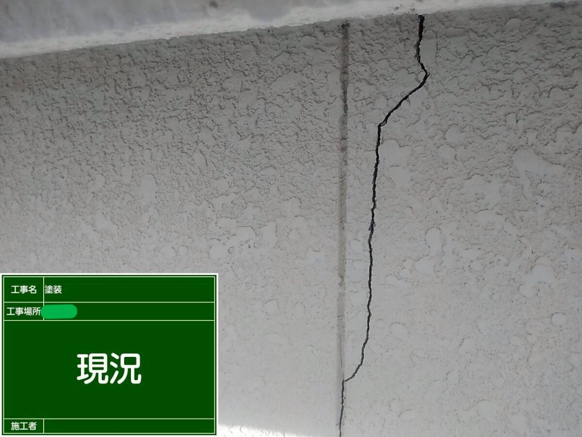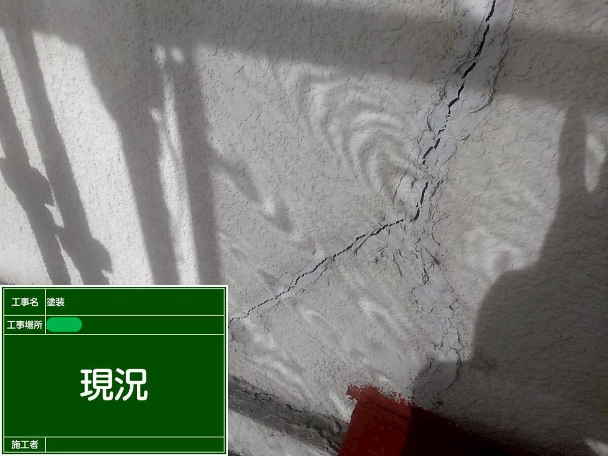 クラック(ひび割れ)の現況です。施主様が数年前に自分で補修をされたそうですが、ご覧のような状態になっていました。