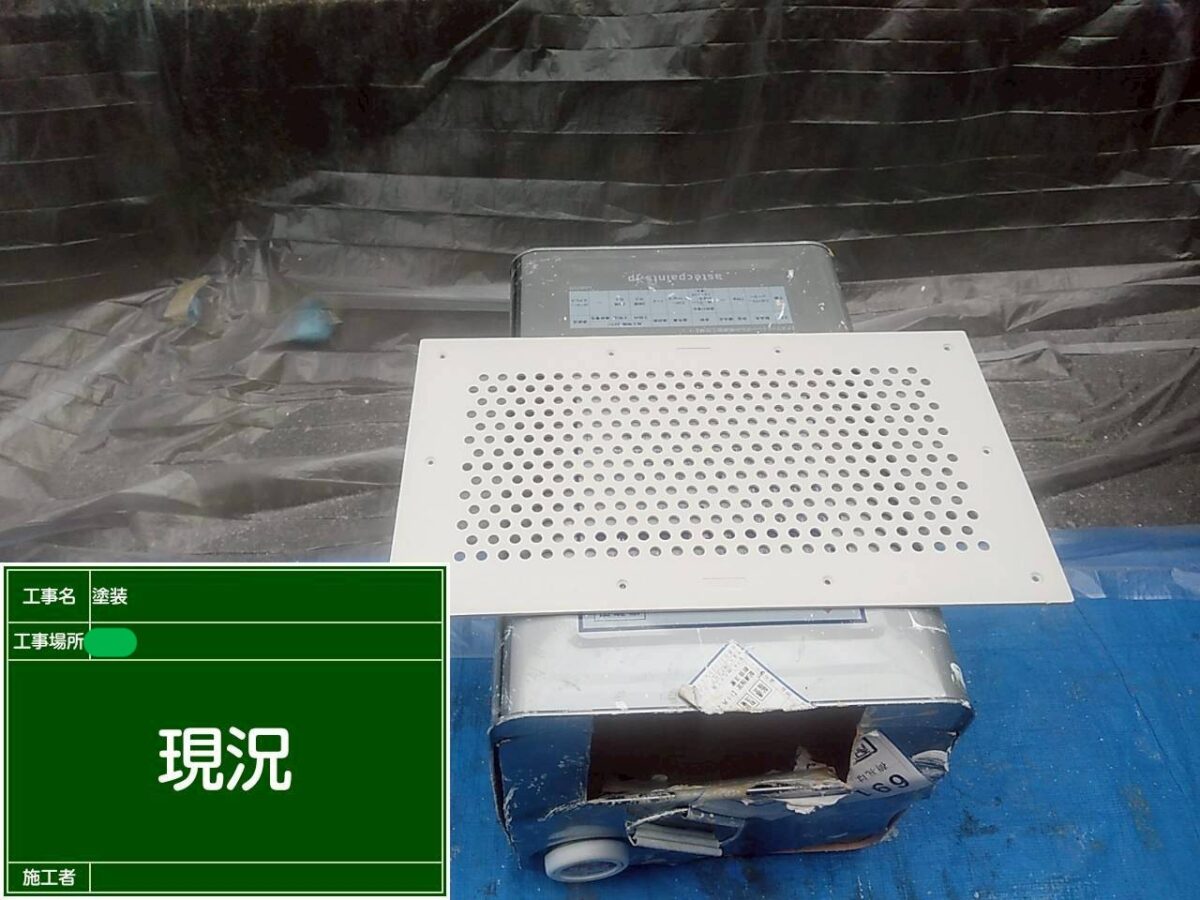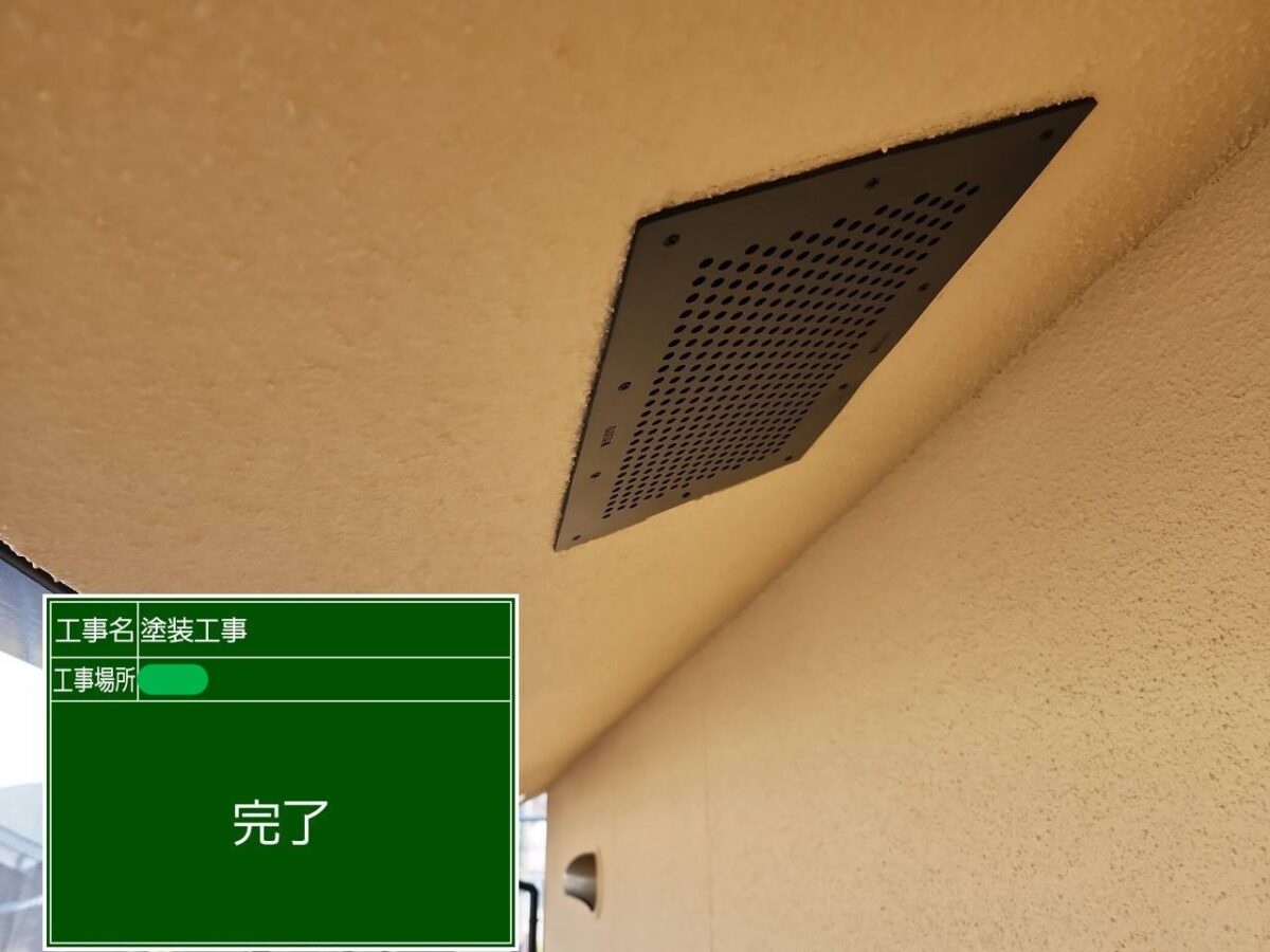 今回交換する換気ガラリは、隙間がなく、目が細かいガラリに交換です。そのまま取り付けてしまうと、白いガラリになり目立ってしまいますので、他の付帯物と一体感を出すために塗装をおこない、取付前にコウモリ忌避スプレーの作業をおこないました。今回、ガラリは計7枚交換させて頂きました。今回、外壁と屋根の塗装工事をご契約頂きましたので、コウモリ対策はサービス工事で施工させていただきました。