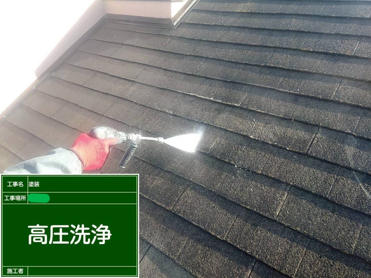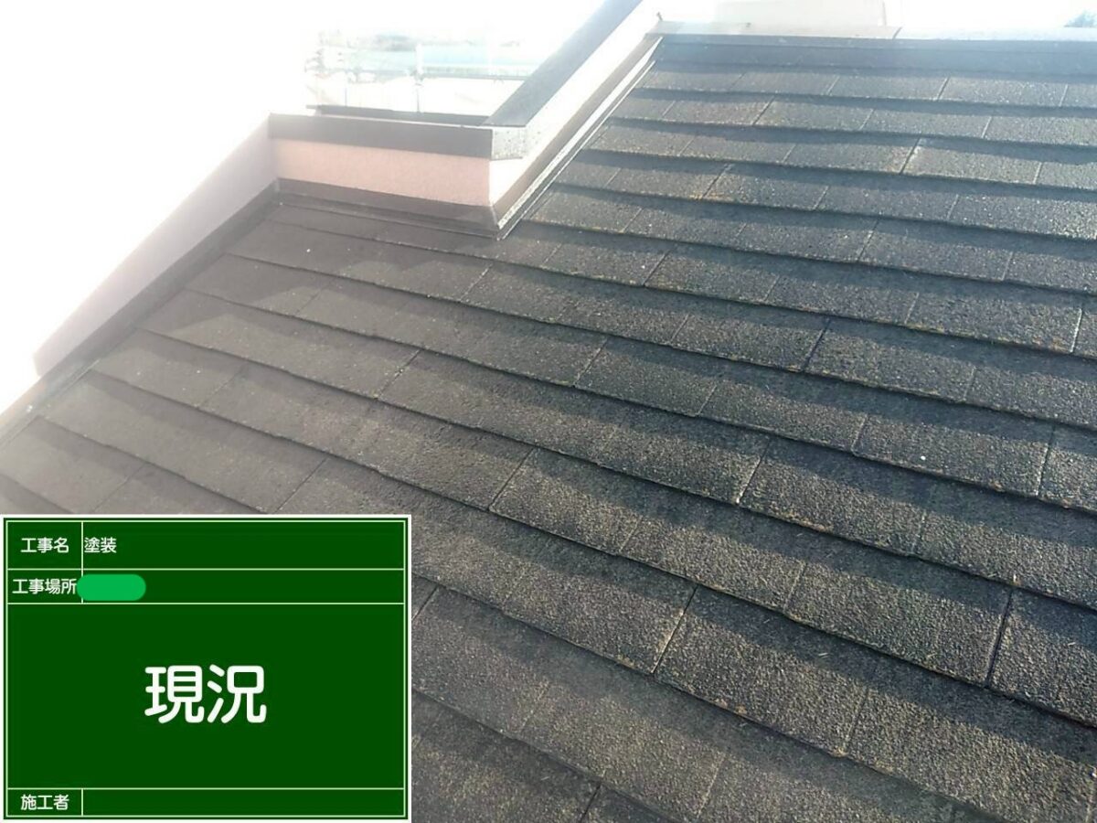 スレート屋根の高圧洗浄になります。既存の屋根の状態は、経年劣化による、汚れや苔・藻の付着が多くある状態でした。また、洗浄前は、汚れによりわかりませんでしたが、屋根材が割れている箇所や、クラック(ひび割れ)がある箇所がありましたので、洗浄作業後は、補修が必要となりました。屋根は紫外線や直射日光の影響を受けやすい場所にもなりますので、外壁以上に早く劣化する場所にもなりますので、注意が必要です。
