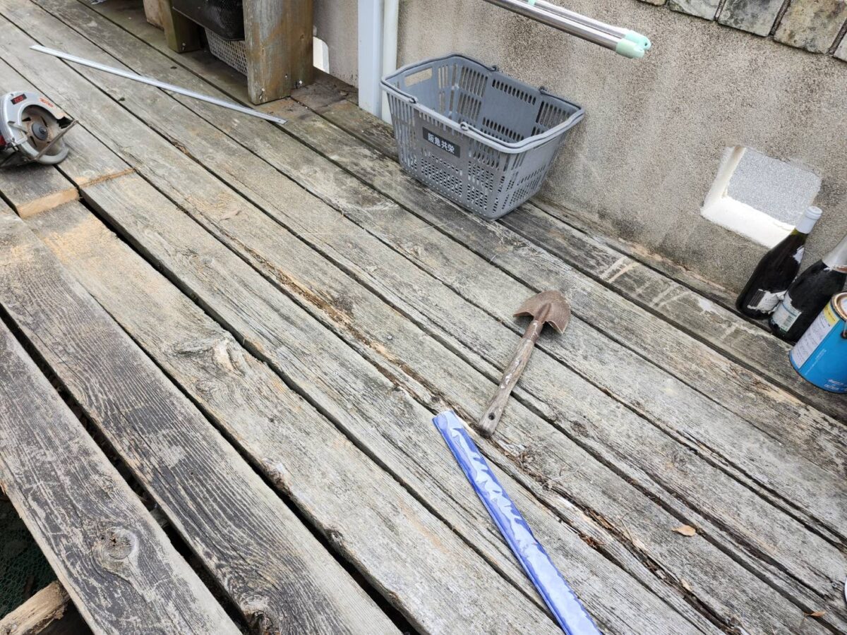 今日の1枚です。ウッドデッキの解体作業をおこないました。木部が傷んでいる箇所を撤去し、まだ、大丈夫そうな箇所はそのまま残しました。丸太工房ではこのような作業もおこなっておりますので、お問合せください。