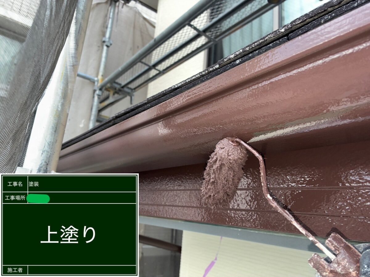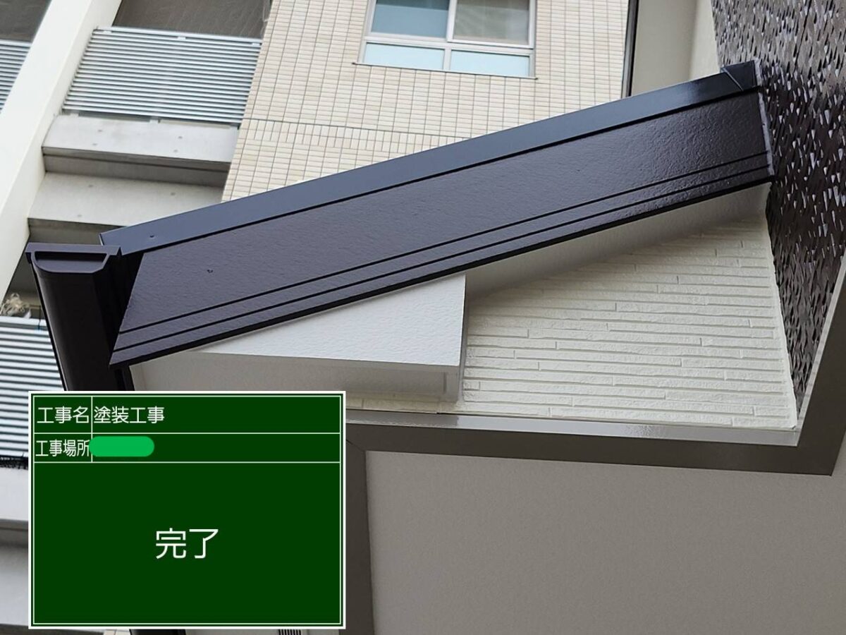 神戸市須磨区にて施工中の現場ですが、付帯物の破風と樋の塗装が完了しましたので、ご紹介します。