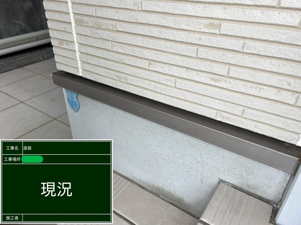 土台水切りの塗装です。シャッターBOXの塗装と同じ塗装工程になりますので、現況と完了でご紹介します。下塗りの錆止めの塗装には、1液ハイポン・ファインデグロ、上塗り塗装には、ファインシリコンセラUVを使用し土台水切りの塗装を仕上げました。