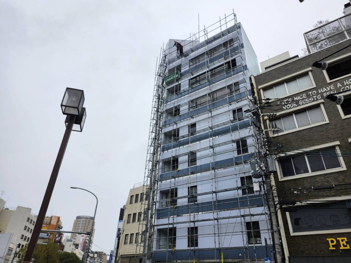 今日の1枚です。8階建てのビルの足場組立作業です。高さがある建物は足場も迫力がありますね!