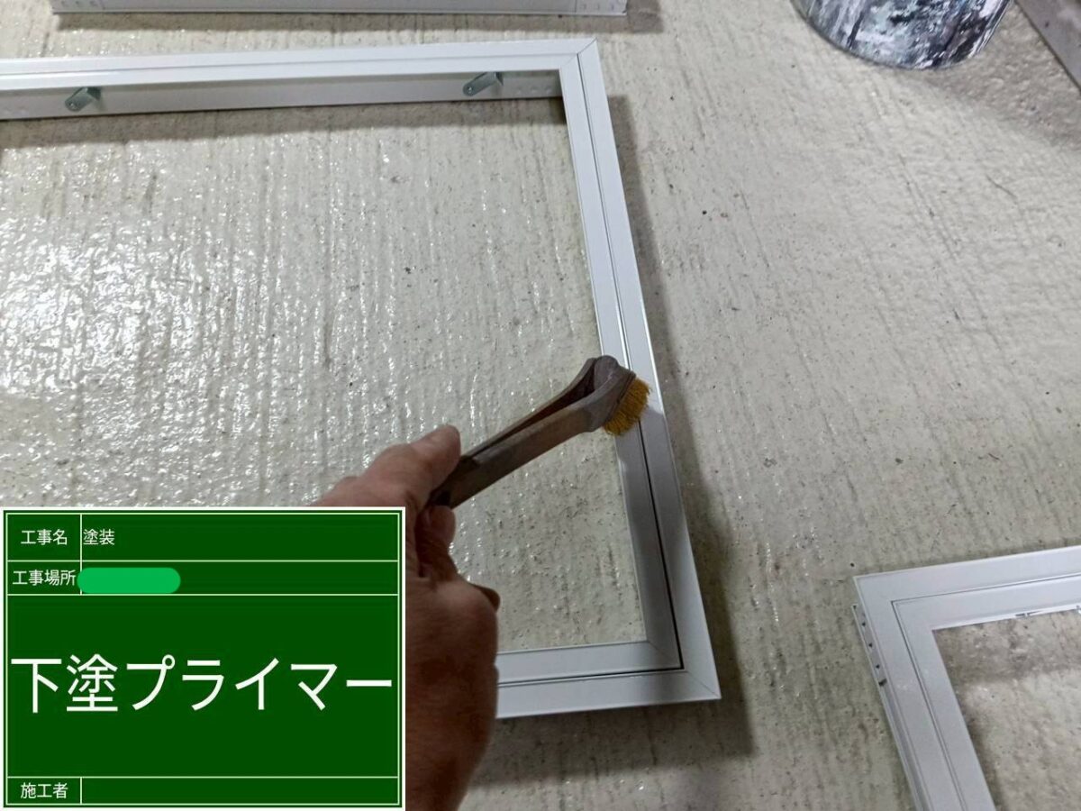 天井点検口の枠の塗装になります。今回は、現場から持ち帰って倉庫で塗装作業をおこないました。まずは、塗料が密着しやすいように、目粗しのケレン作業をおこないます。続きまして、下塗りのプライマーの塗装になりますが、今回、プライマーの塗装には、染めQテクノロジィのミッチャクロンを使用です。その名の通り、塗料が密着しにくい素材、アルミ・ステンレス・クロムメッキなどの金属類や、ポリプロピレン・ABS・FRPなどのプラスチック類やガラス・焼付塗装面などにも使用が可能で、従来の密着剤では密着が不十分な箇所でも、高い密着力を発揮し、表面張力を低下させ、広い面で密着させることで、驚異的な密着量があります。ミッチャクロンは透明な塗料になりますので、上塗り材の色を気にしないで塗装できるのもうれしいですね!中塗りと上塗りの塗装には、既存の天井の色に合わせて塗装作業をおこないました。