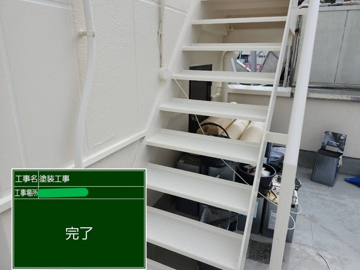神戸市中央区にて、屋上塔屋の鉄扉と鉄骨階段の塗装をおこないましたので、ご紹介します。