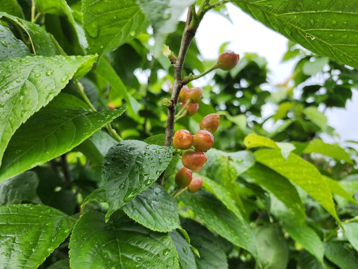 今日の1枚です。サクランボの実が色ずいてきましたよ(^^♪