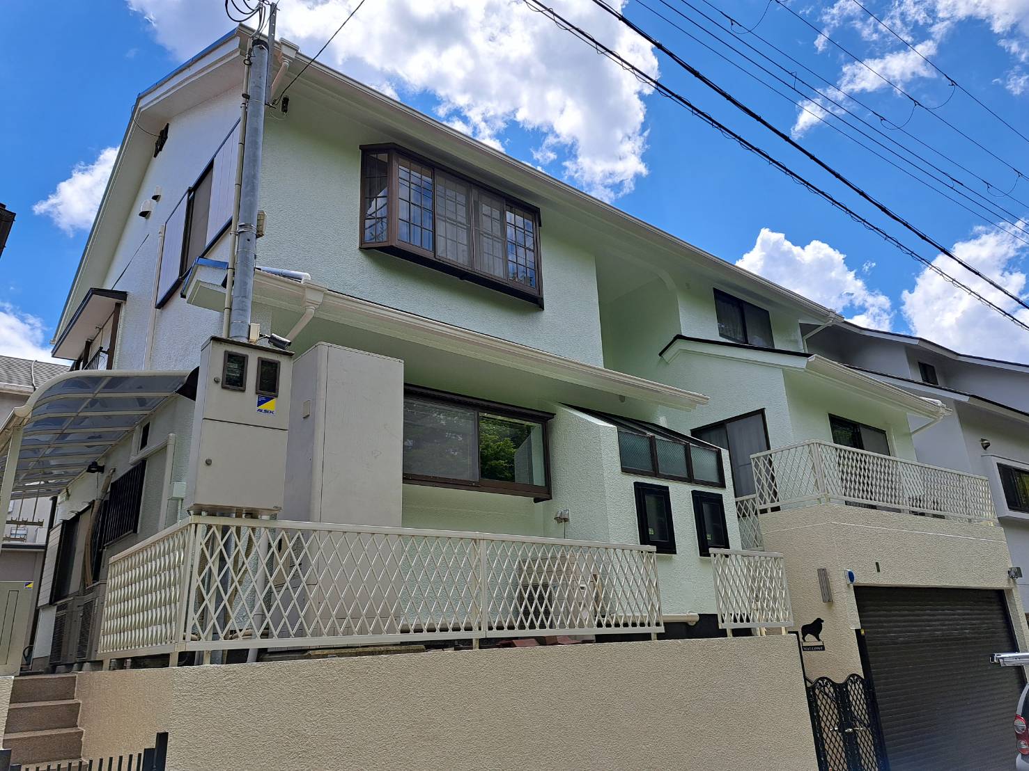 【施工例】外壁塗装・付帯物・雨樋・塀・擁壁・屋根塗装|塗装工事完了 神戸市北区 -